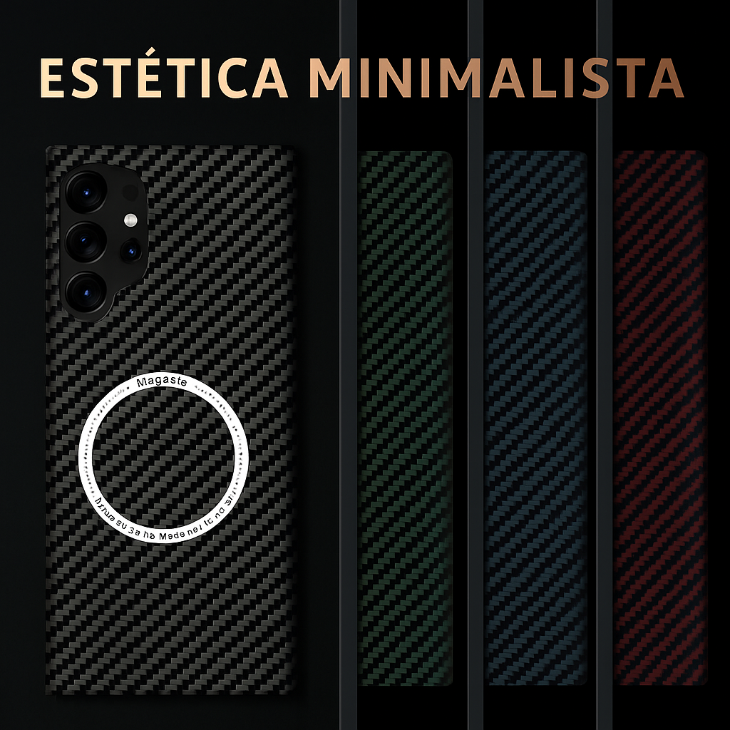 Proteja seu Samsung com a Capa de Fibra de Carbono, a combinação perfeita de estilo e segurança. Ela possui bordas elevadas ao redor da câmera, garantindo uma defesa extra para suas fotos épicas. Leve e ultrafina, esta capa abraça seu aparelho, oferecendo carregamento sem fio MagSafe e um toque macio e fosco. Prepare-se para uma proteção moderna e super descolada!